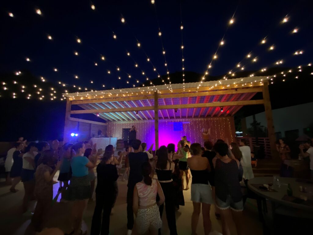 Y cuando llega la noche, ¡es la hora de la fiesta! Le ofrecemos veladas temáticas, braseros gigantes, actuaciones en directo de cabarety bingosesiones karaoke y pruebas ciegas para completar la jornada en un ambiente cálido y festivo.